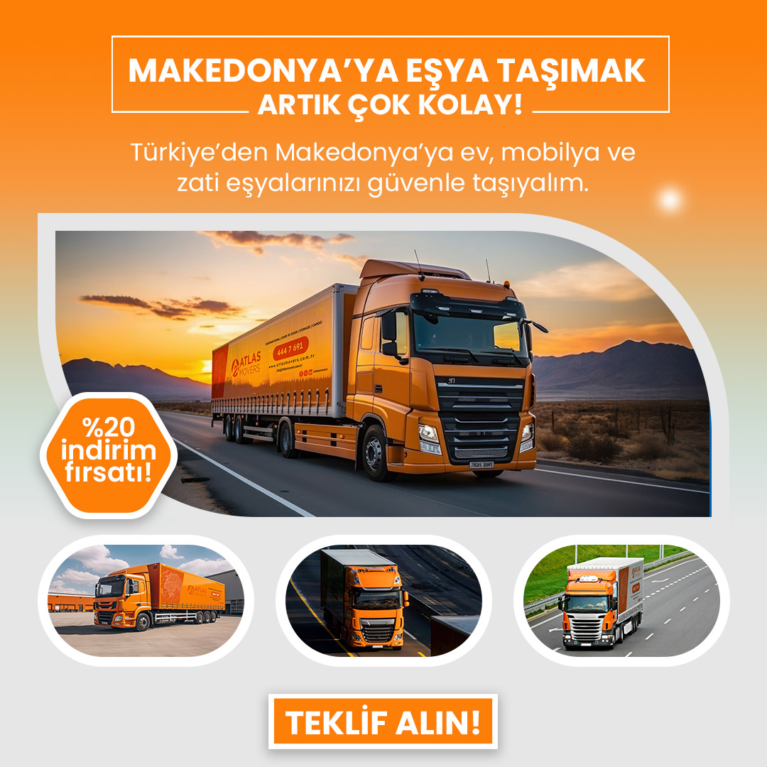 Makedonya’ya taşınırken profesyonel destek almak, tüm süreci sorunsuz ve güvenli hale getirir. Atlas Lojistik olarak, Türkiye’den Makedonya’ya ev taşıma sürecinizde yanınızdayız. Hızlı, güvenilir ve gümrük süreçlerine hakim uluslararası taşımacılık hizmetimizle; eşyalarınız zamanında ve sorunsuz şekilde yeni adresinize ulaştırılır.